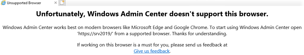Turns out, you’re supposed to manage your severs from a management machine (preferably Windows 10 of course) and not on your server. Since this is a quick test lab however, I’ll just install a decent browser and get along with the show!
