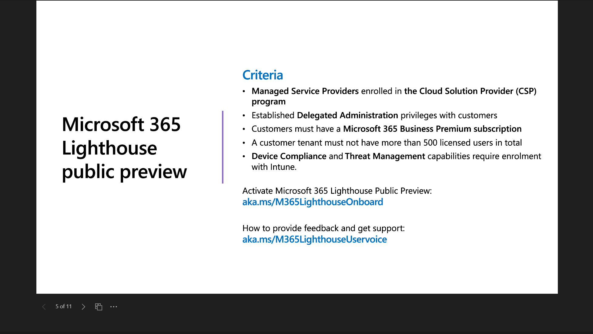 Some of the key points for Microsoft 365 Lighthouse as provided by Microsoft are: