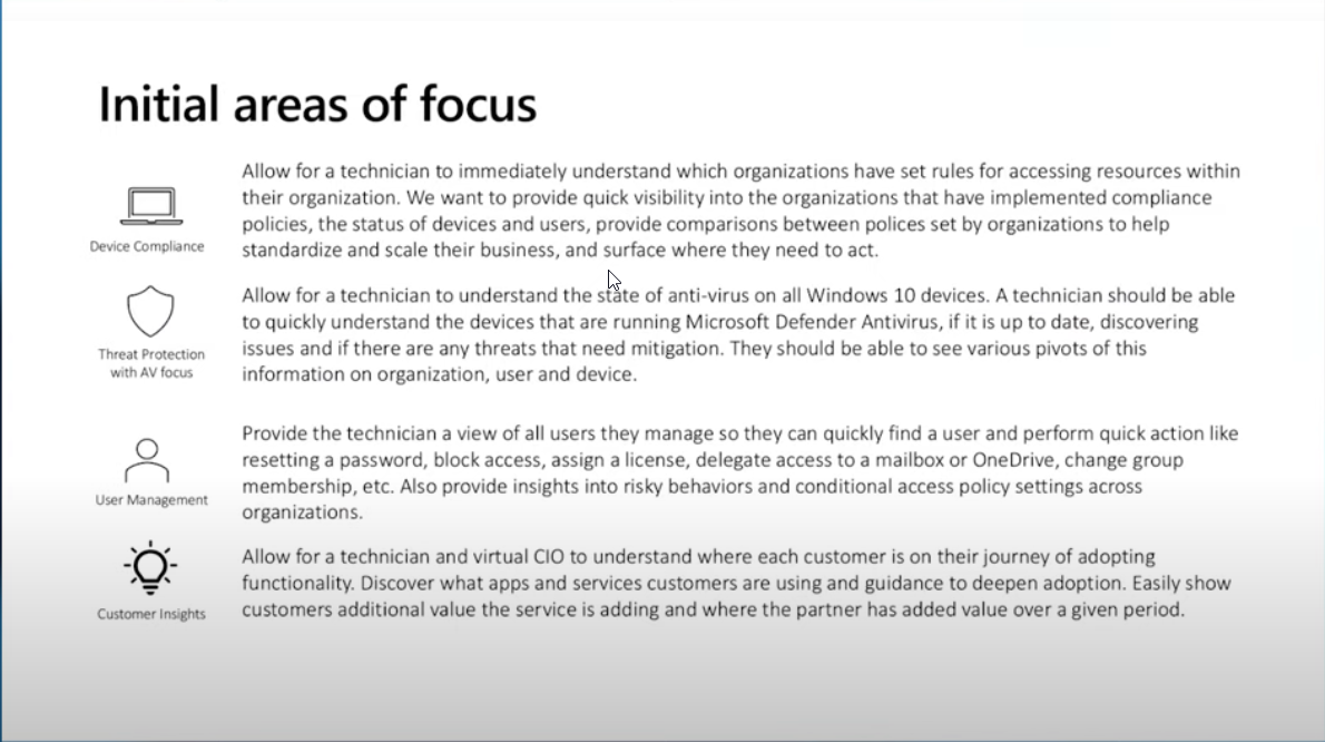 It’s supposed to be a single pane of glass to manage all your customers from, giving you quick insight into all of your customers and their tenants, users and devices.